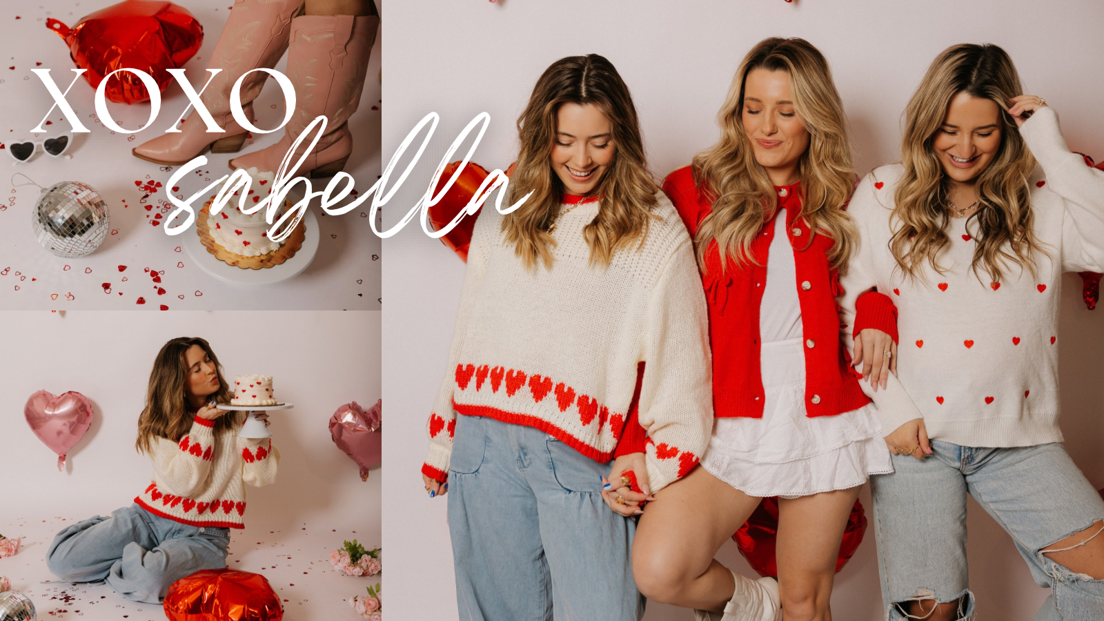 Pop of Red Sweater, White