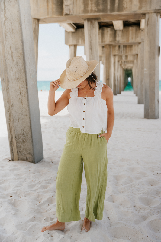 Beach Girl Linen Pants, Olive