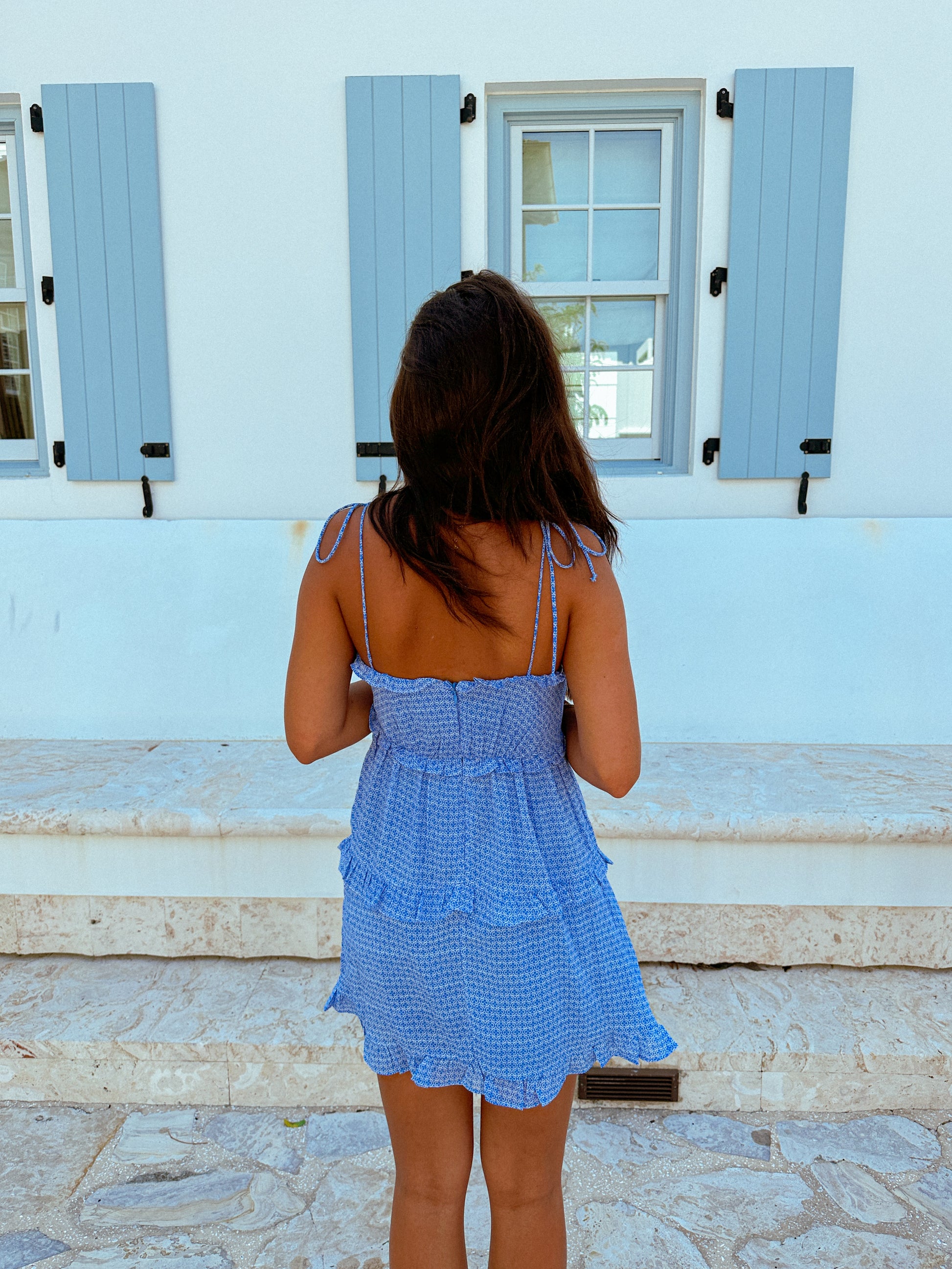 Clover Print Sweetheart Neck Sleeveless Adjustable Tie Strap Ruffle Trim