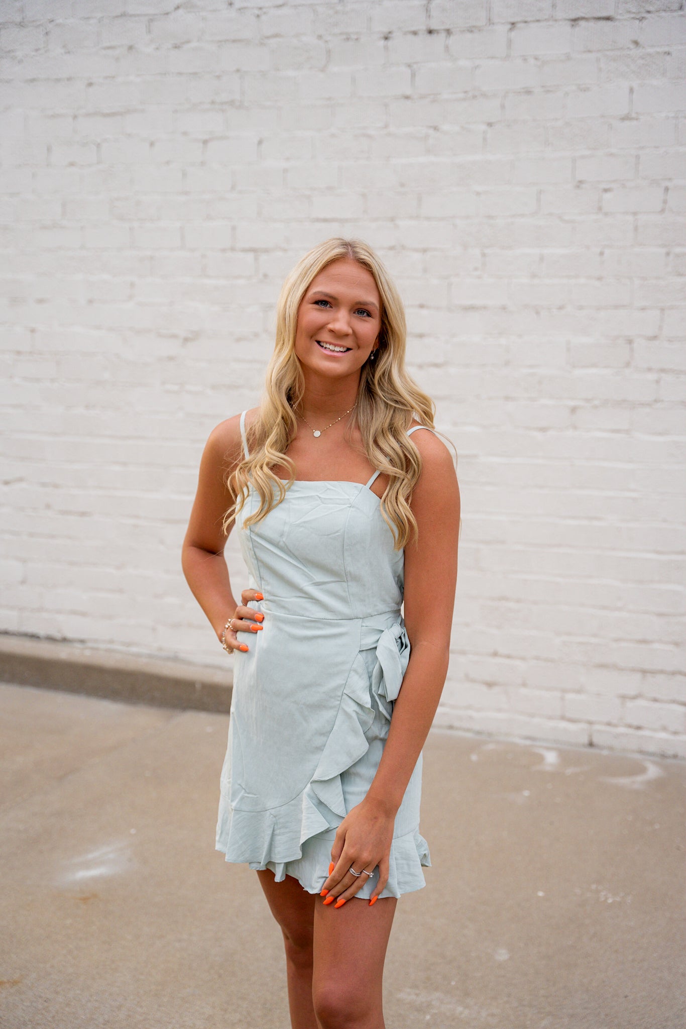 WOVEN OPEN BACK TIED CAMI RUFFLED DRESS