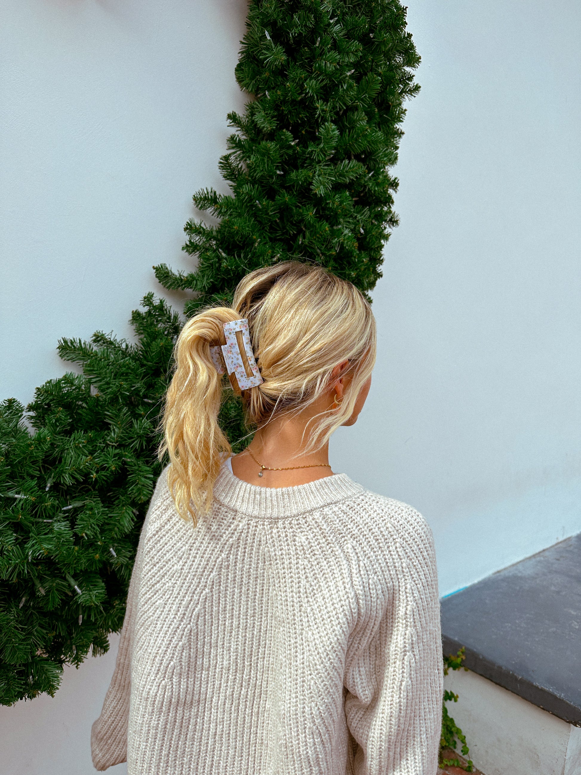 Floral Claw Clip, White