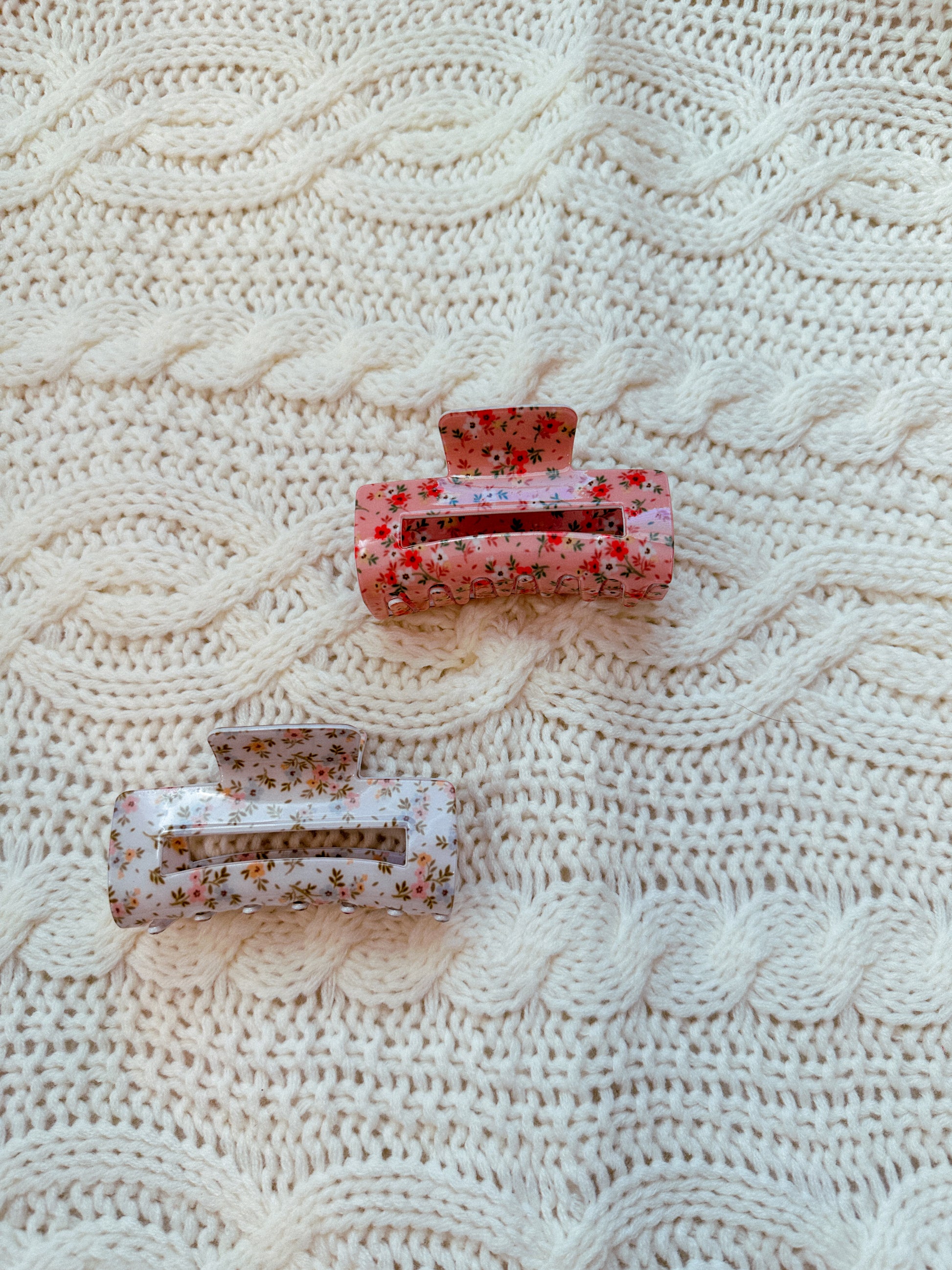 A trendy, lightweight and stylish floral patterned mid size hair claw clip. High-Quality and Lightweight.