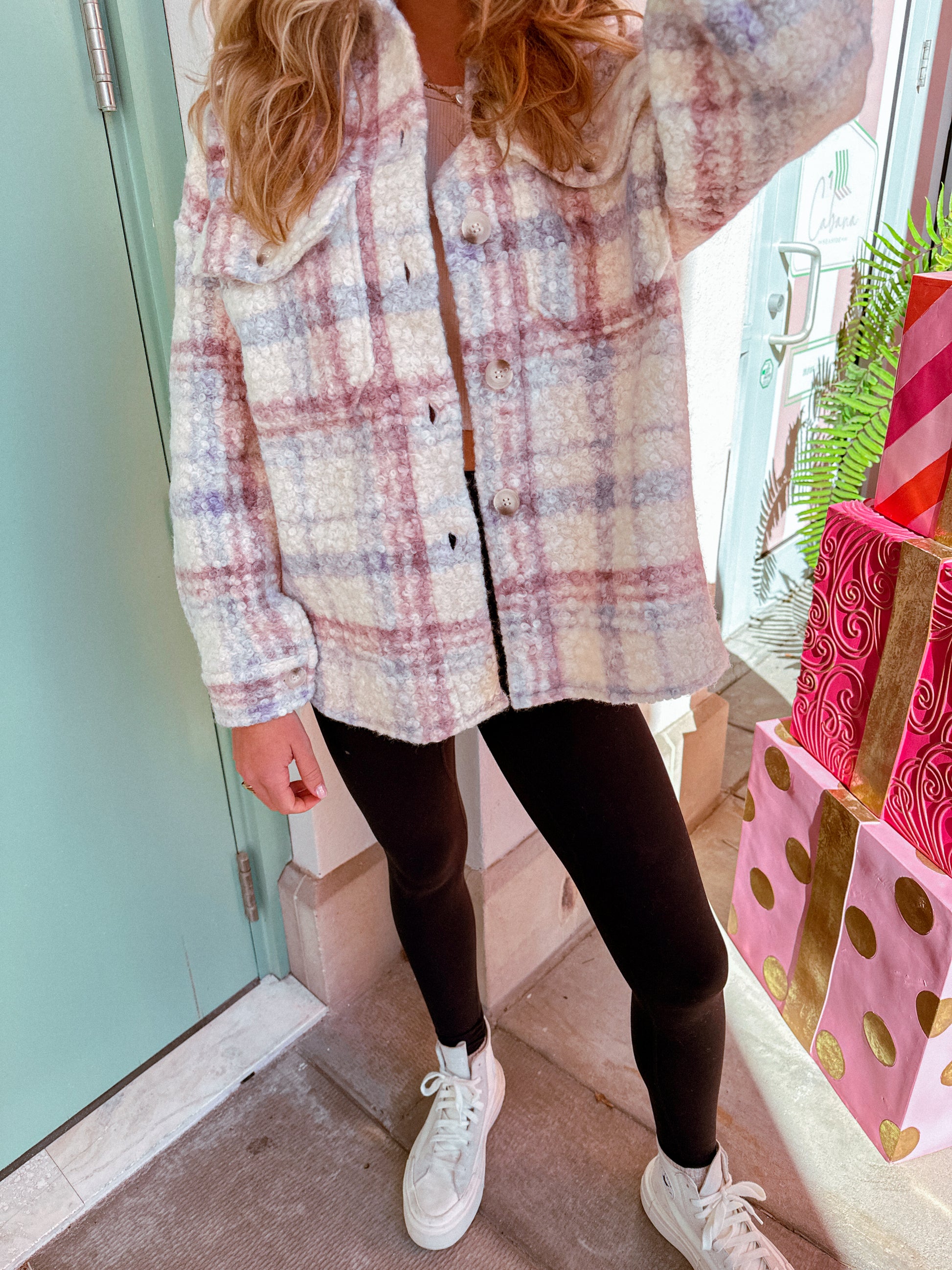 The perfect teddy coat ever! There are so many ways to style this jacket. The lavender colors are our new fav!