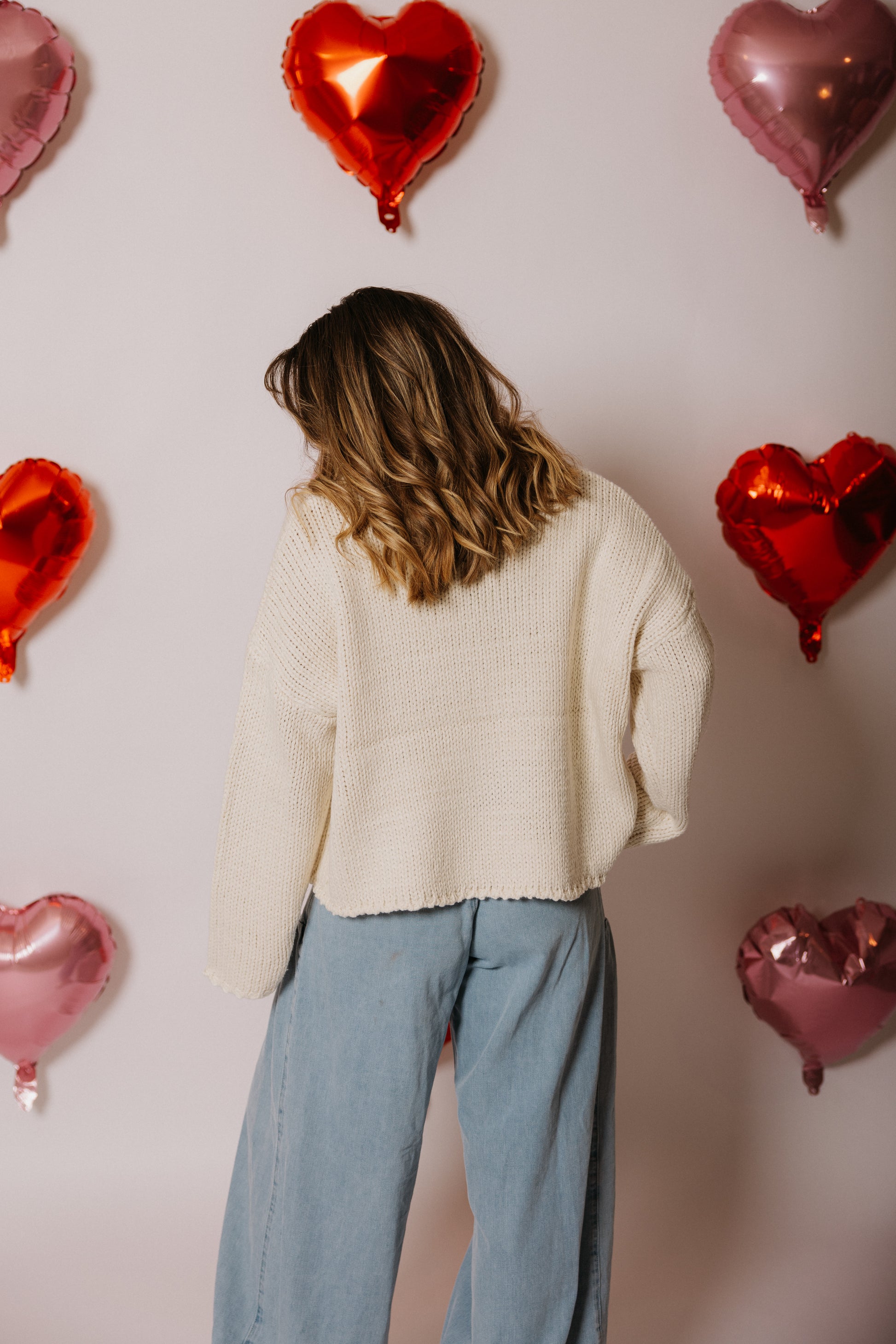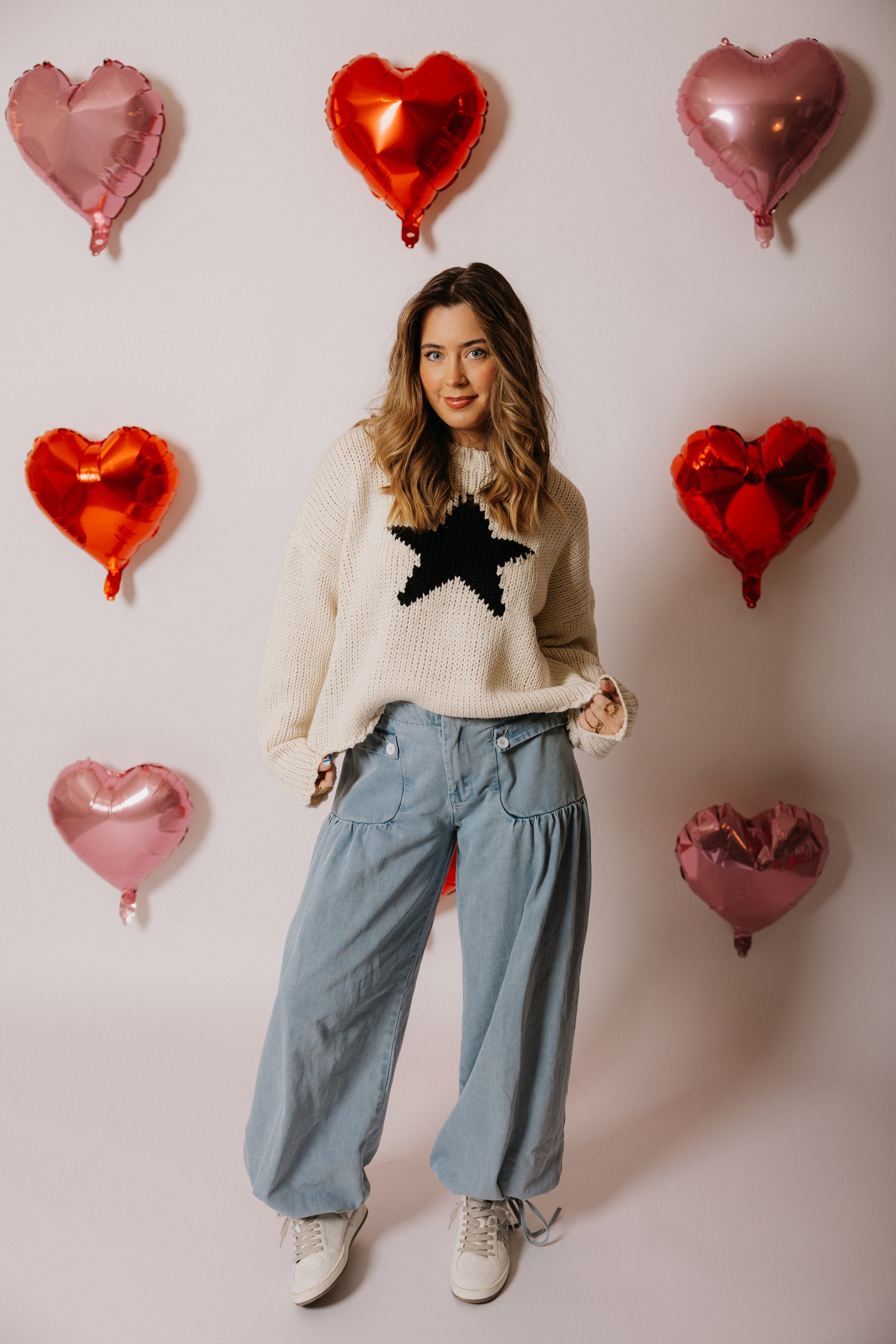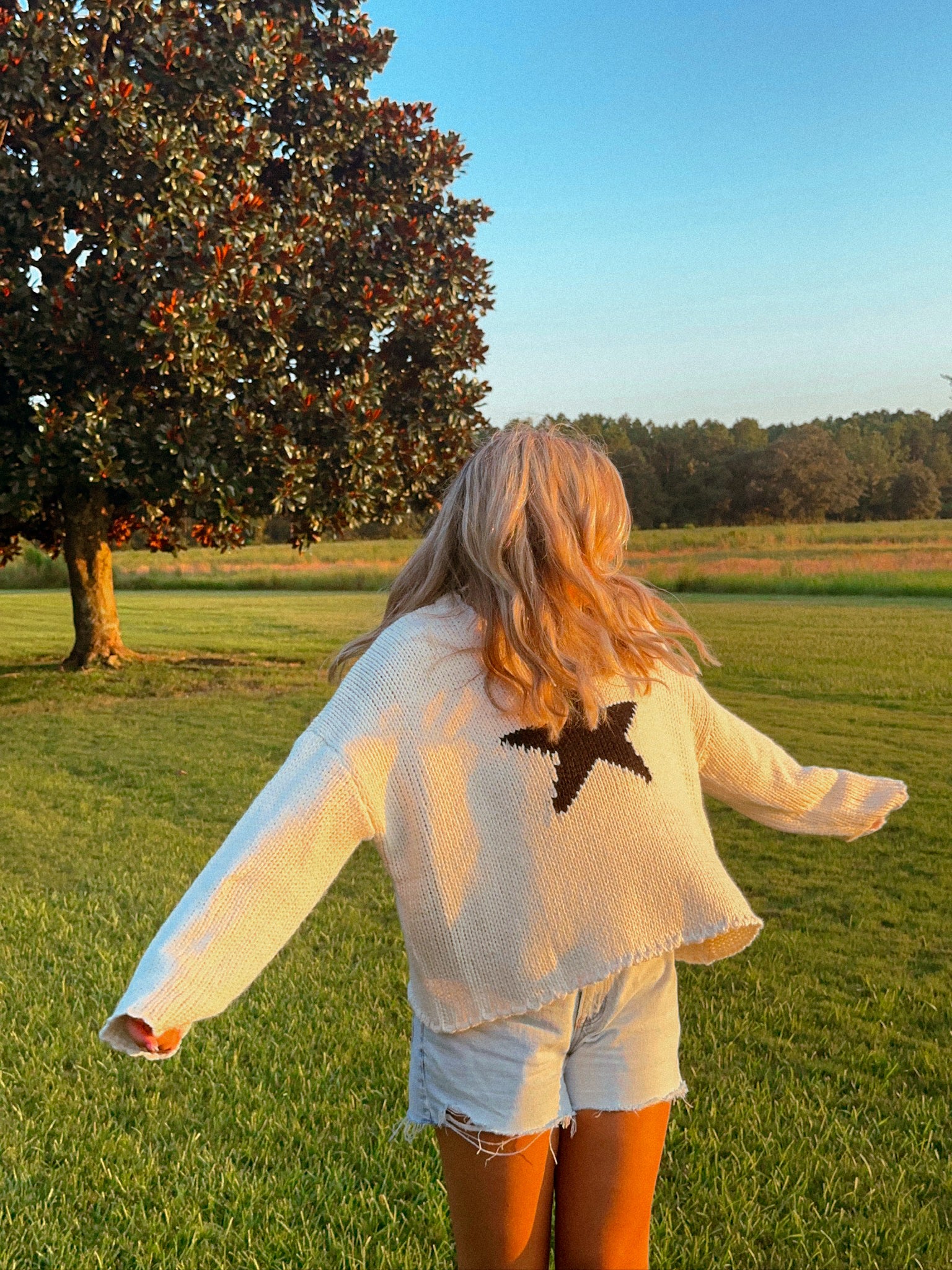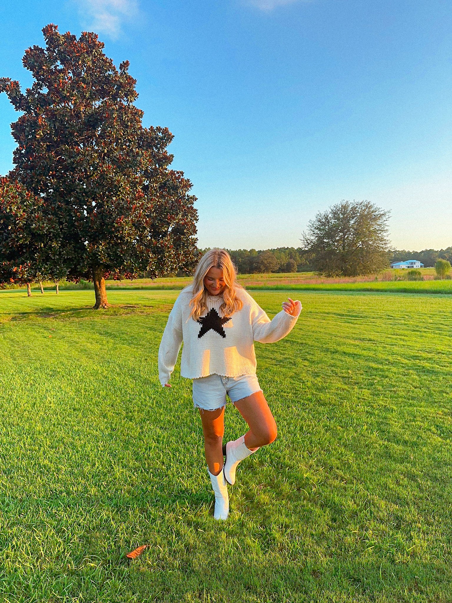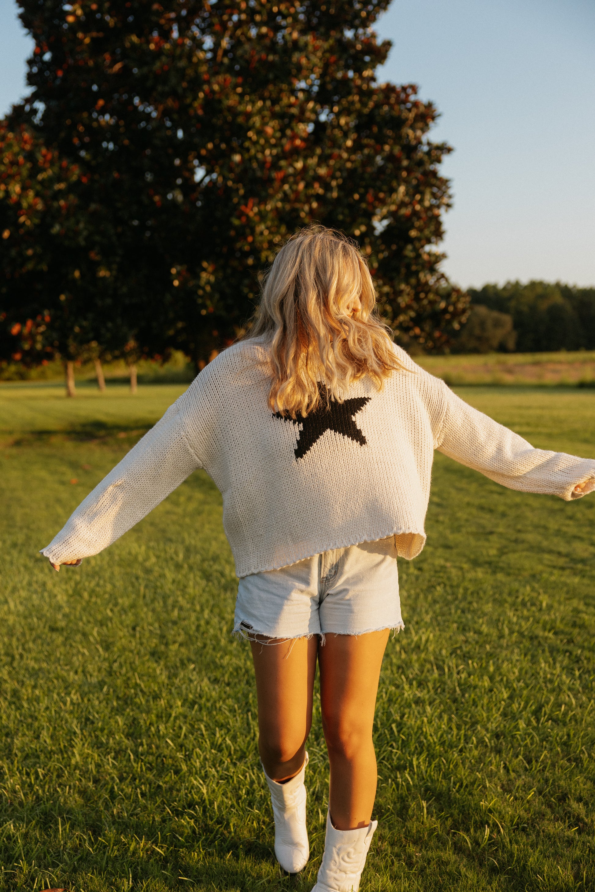 - Medium-weight soft knitting sweater - Contrast STAR pattern on front - Rib bands on neckline - Loose fit crop sweater