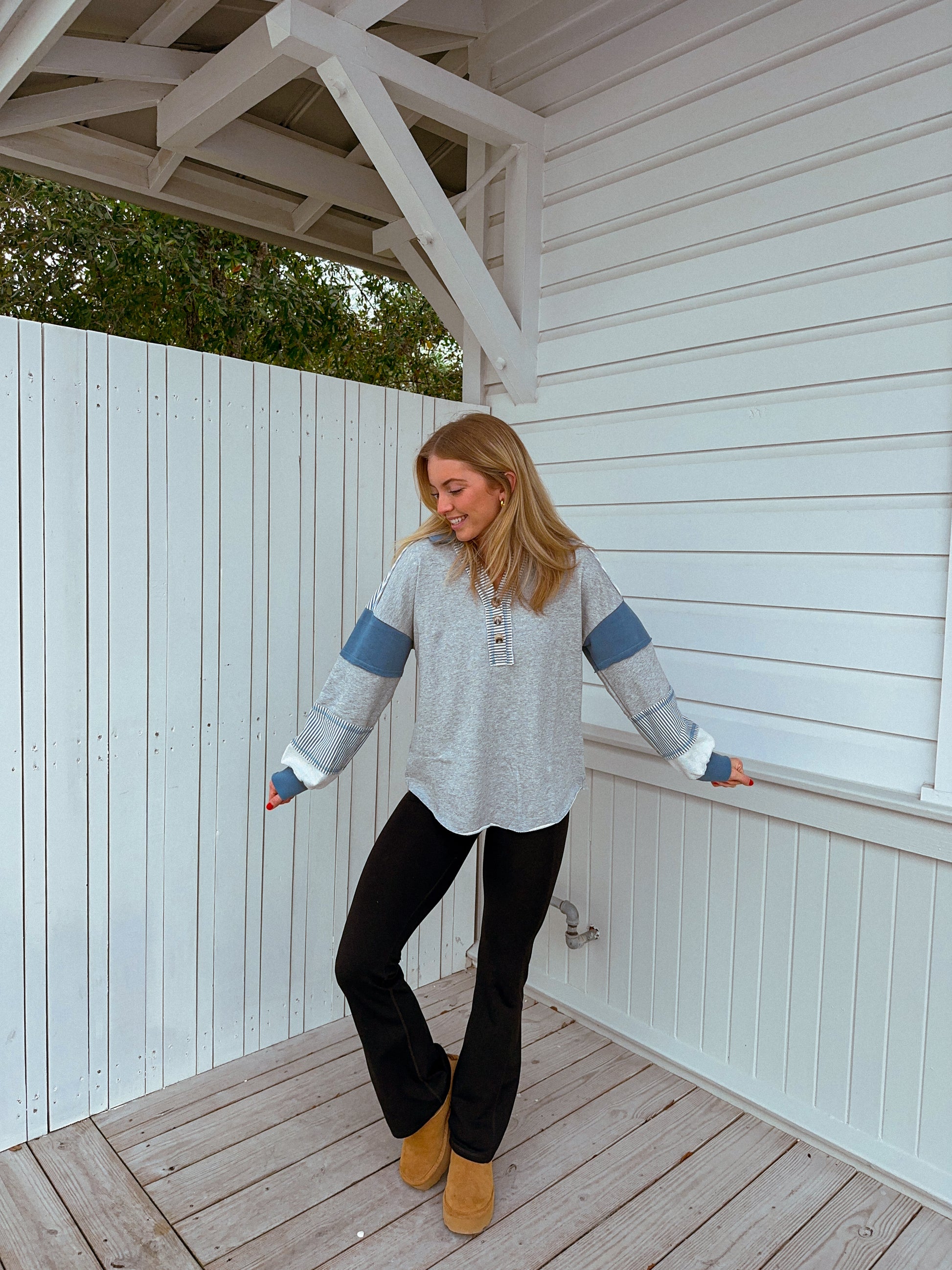 - Color Block Oversized Casual Knit Top - Drop Shoulder - Round Hem