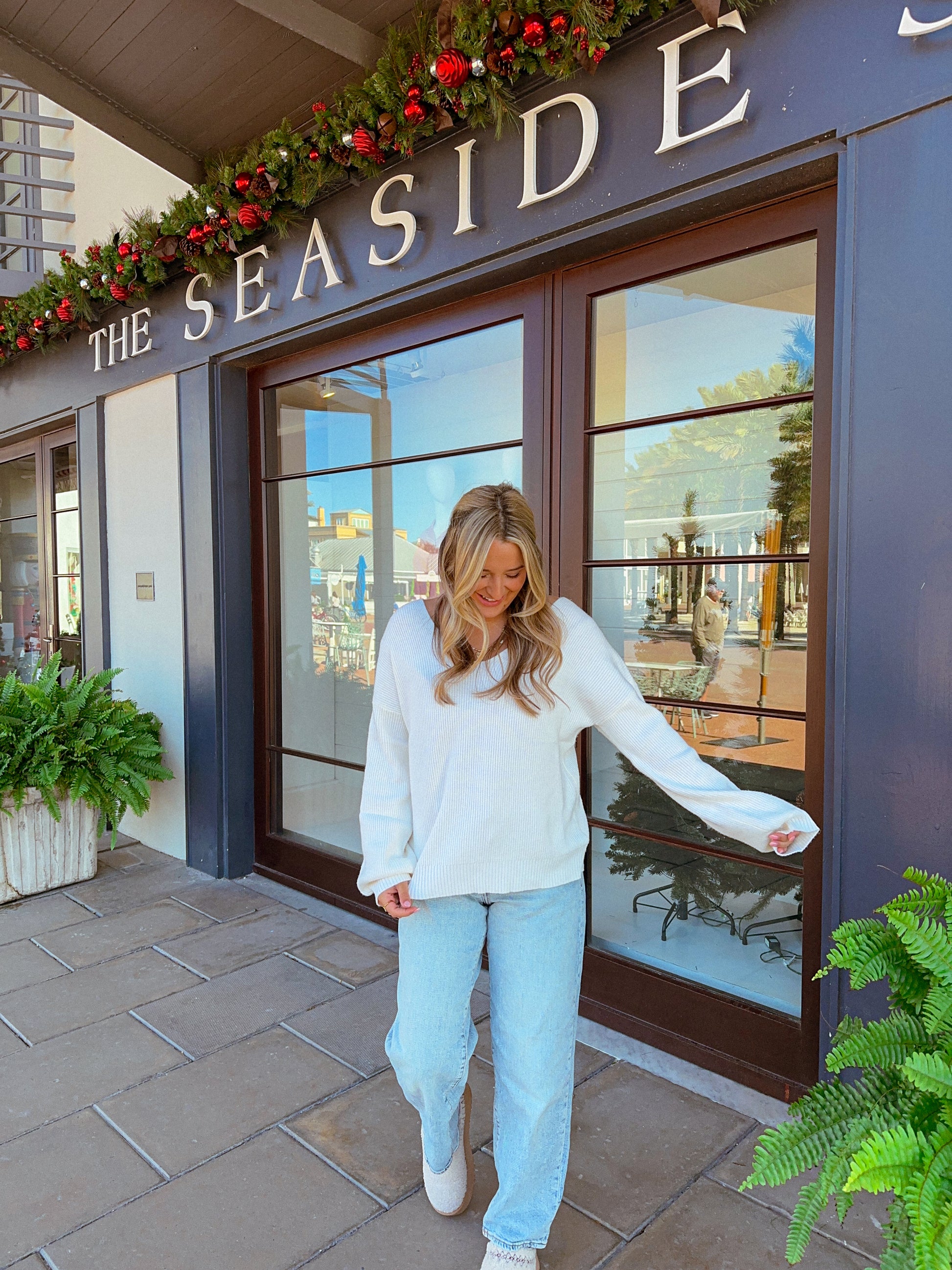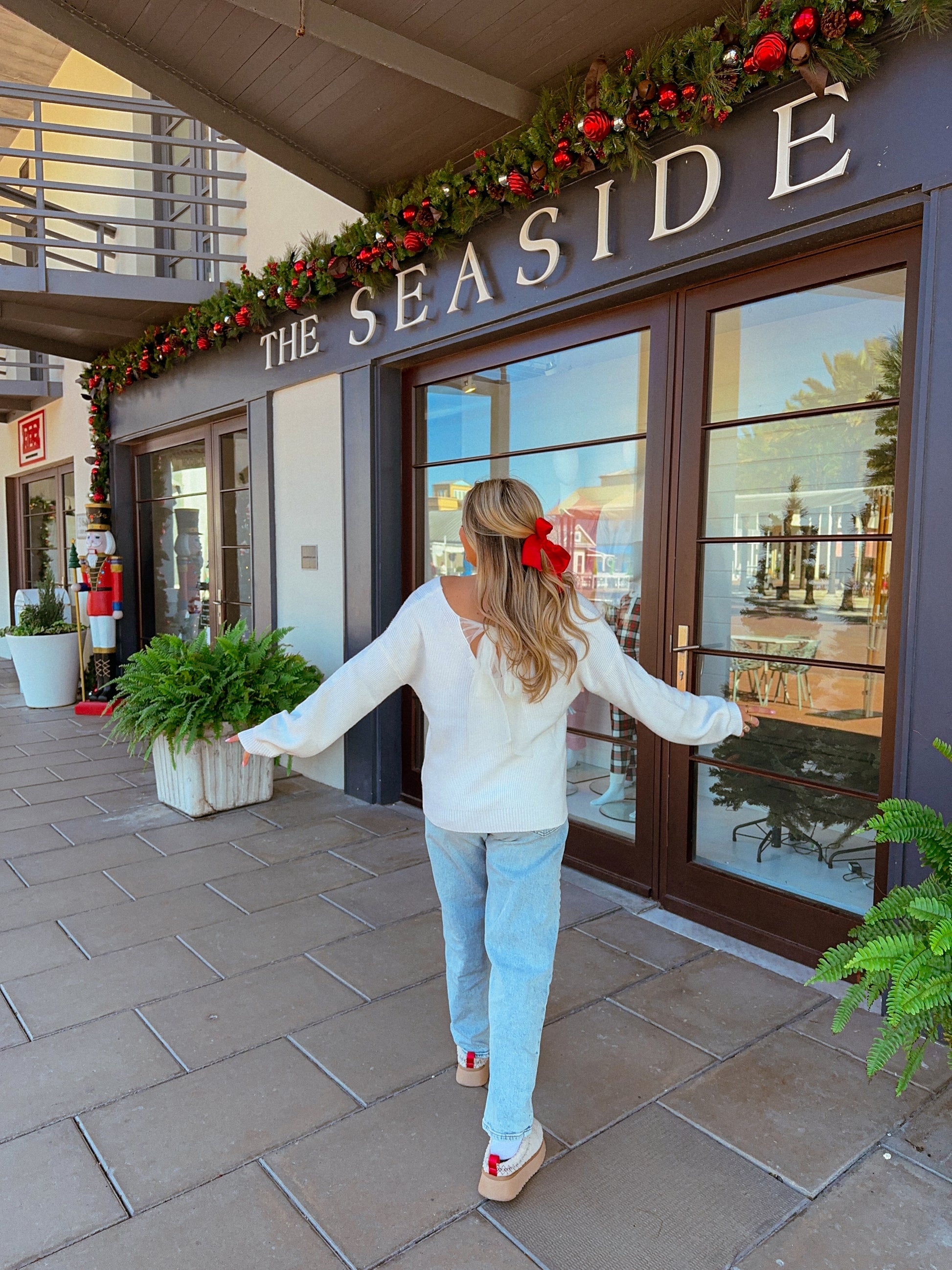 -V NECKLINE WITH A RELAXED FIT BACK V DETAIL BACK RIBBON BOW SELF TIE KNITWEAR SWEATER