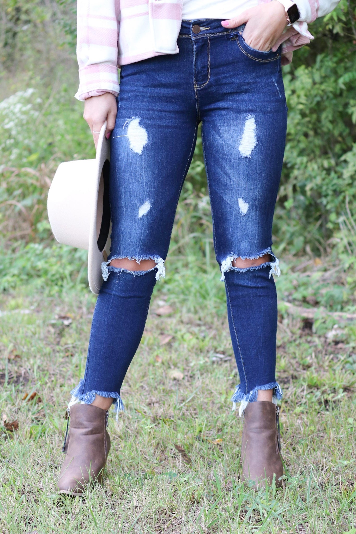 Frayed Hem Ankle Skinny Jeans