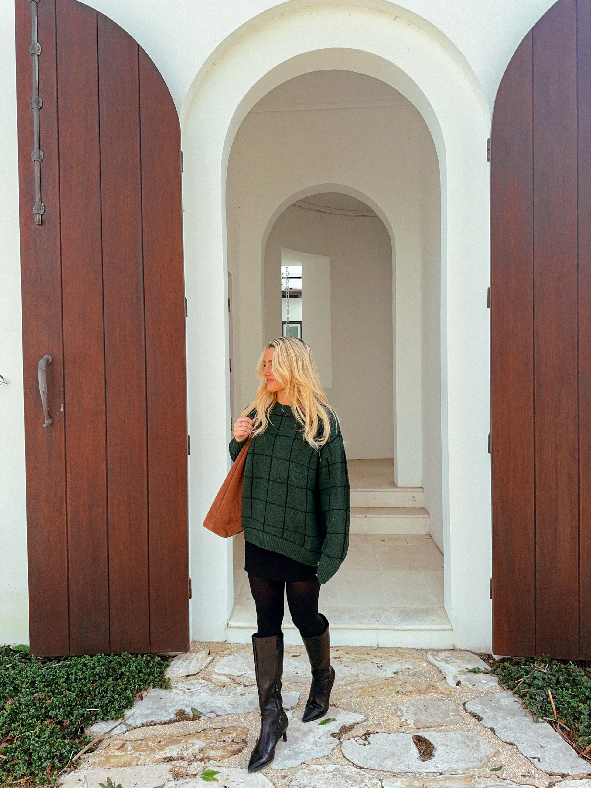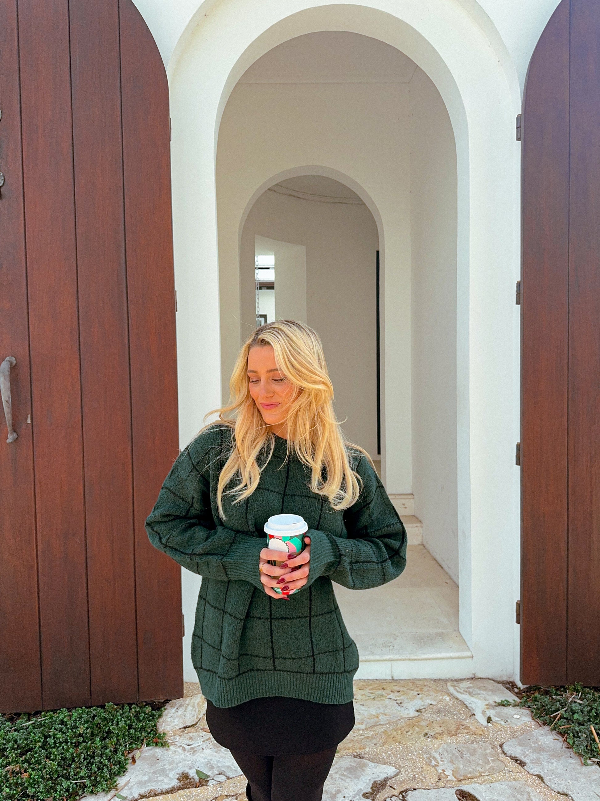 RELAXED FIT GRID PATTERN PULLOVER KNIT SWEATER