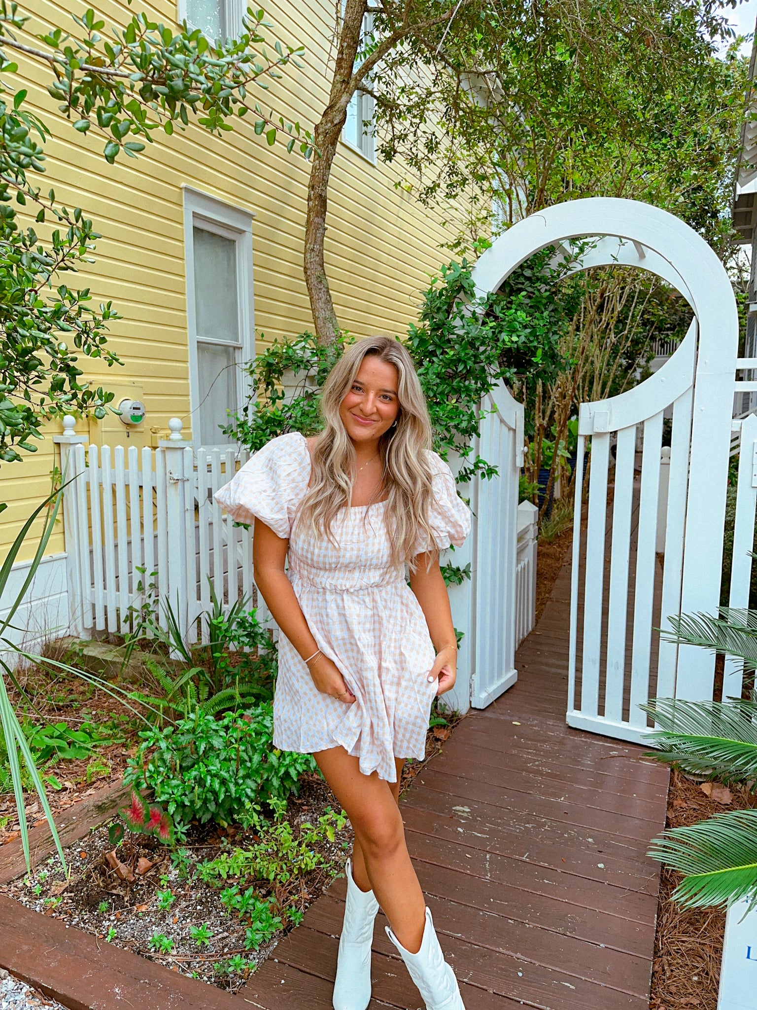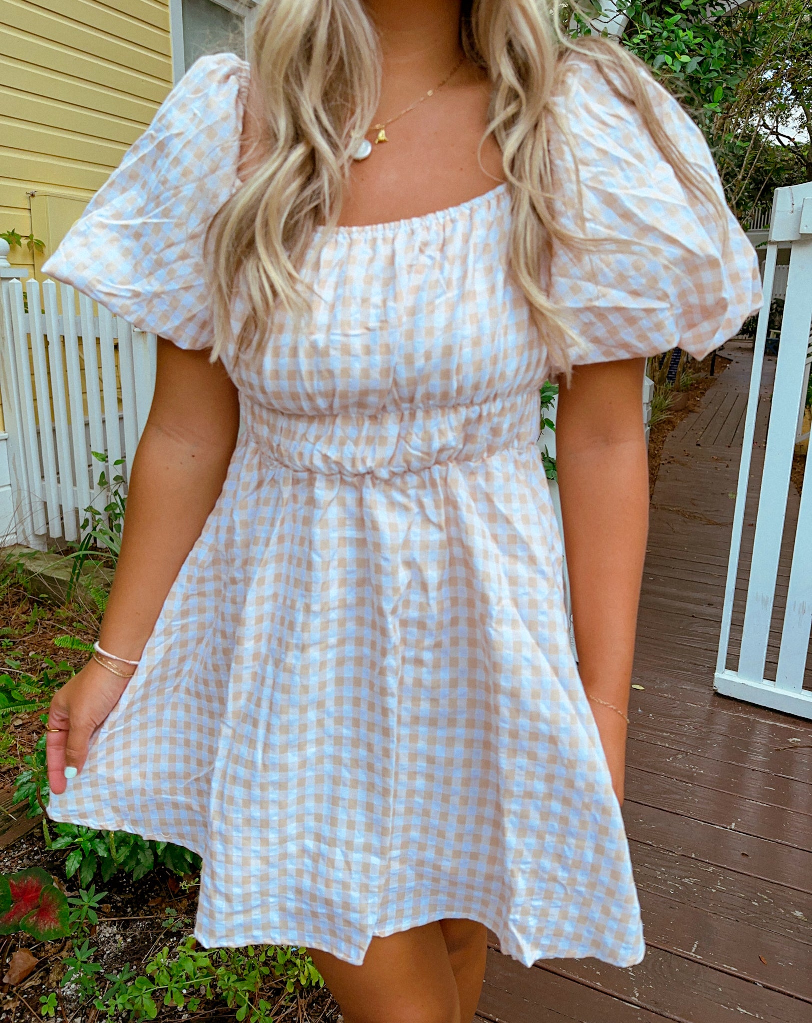 Wear this perfect puffy sleeve detailed dress on and off shoulder everywhere!