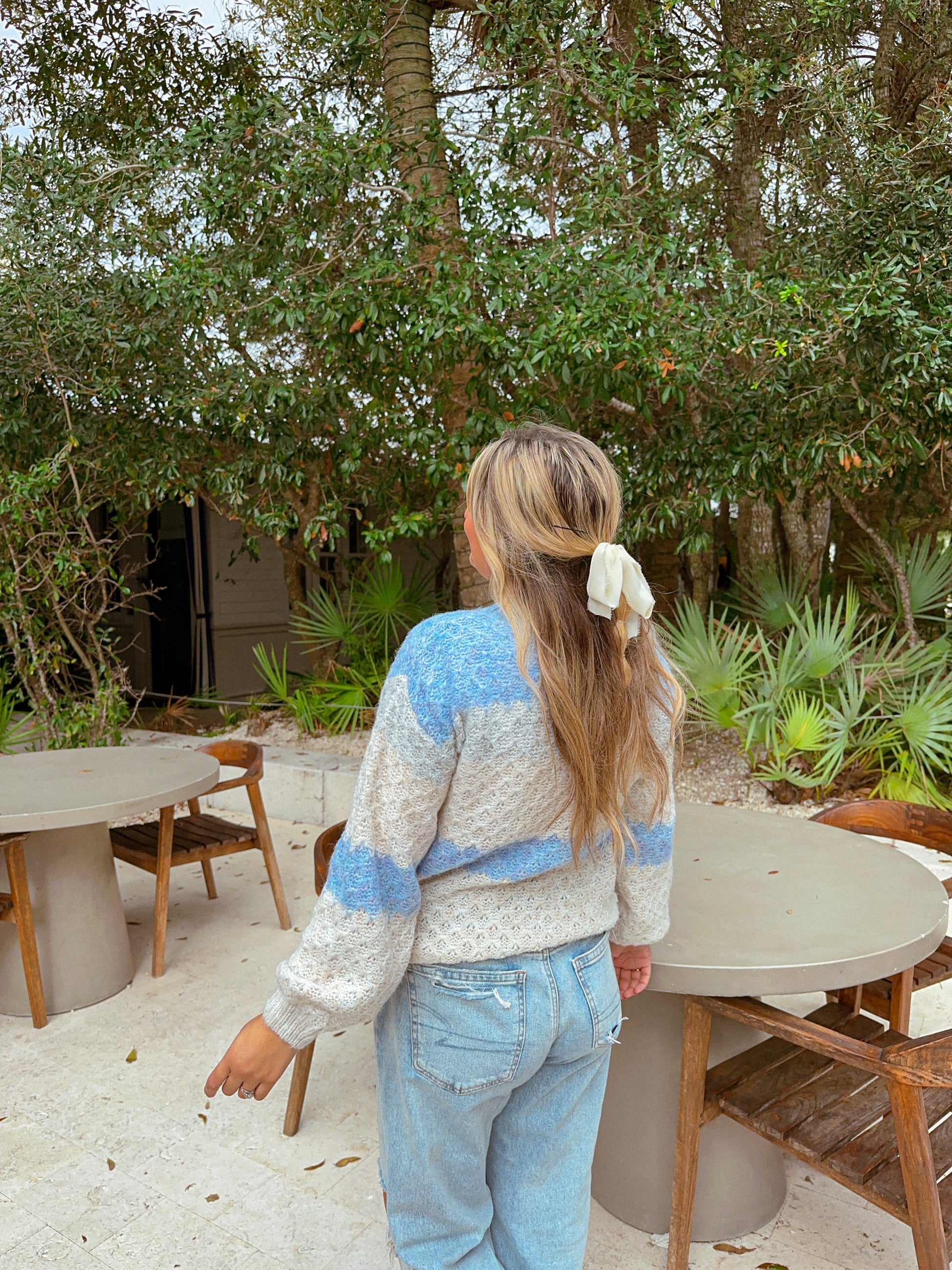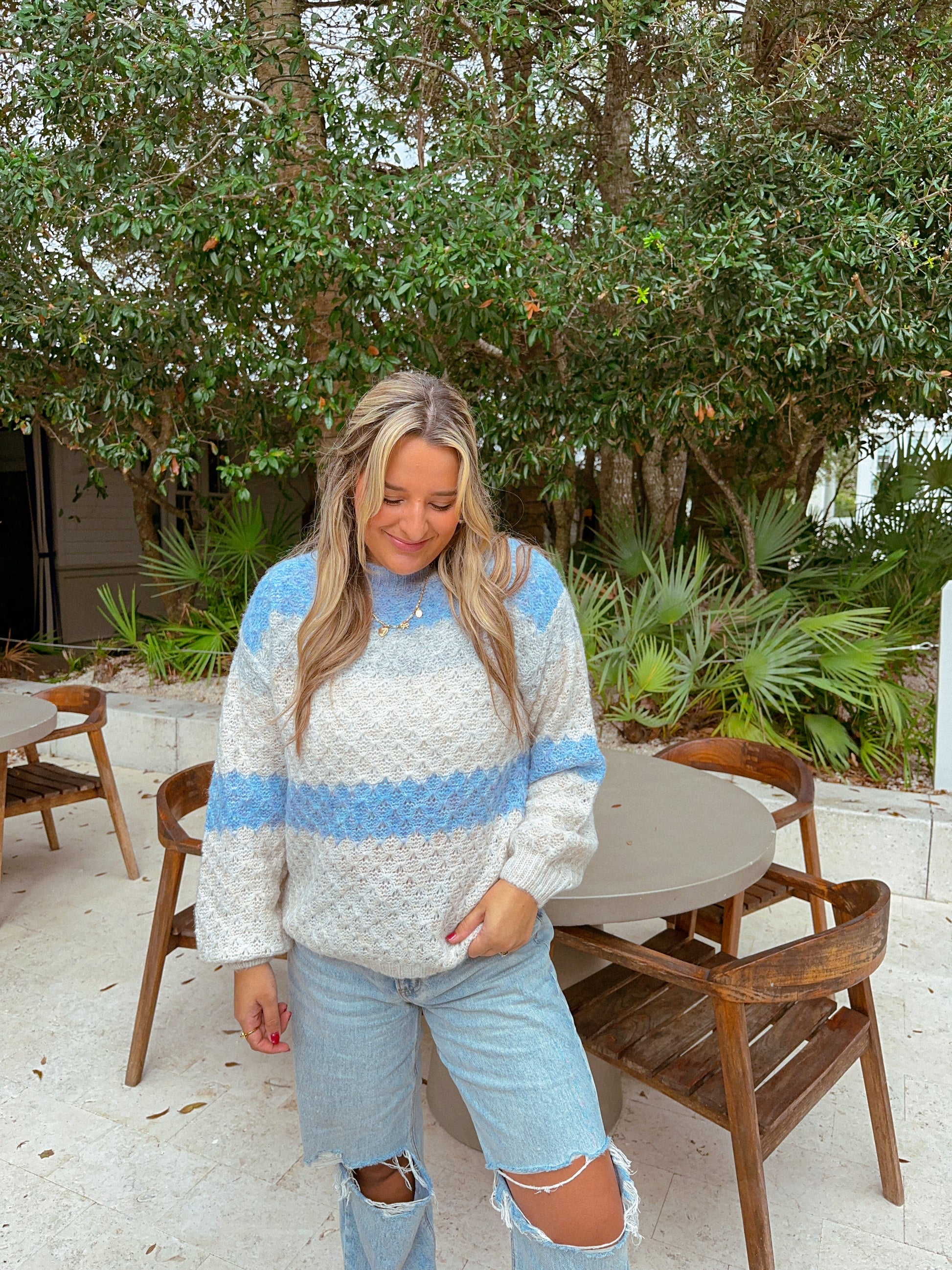 Stay cozy and stylish in this long-sleeve high-neck pointelle knit sweater! Featuring a relaxed fit for effortless comfort, this sweater is adorned with delicate pointelle detailing