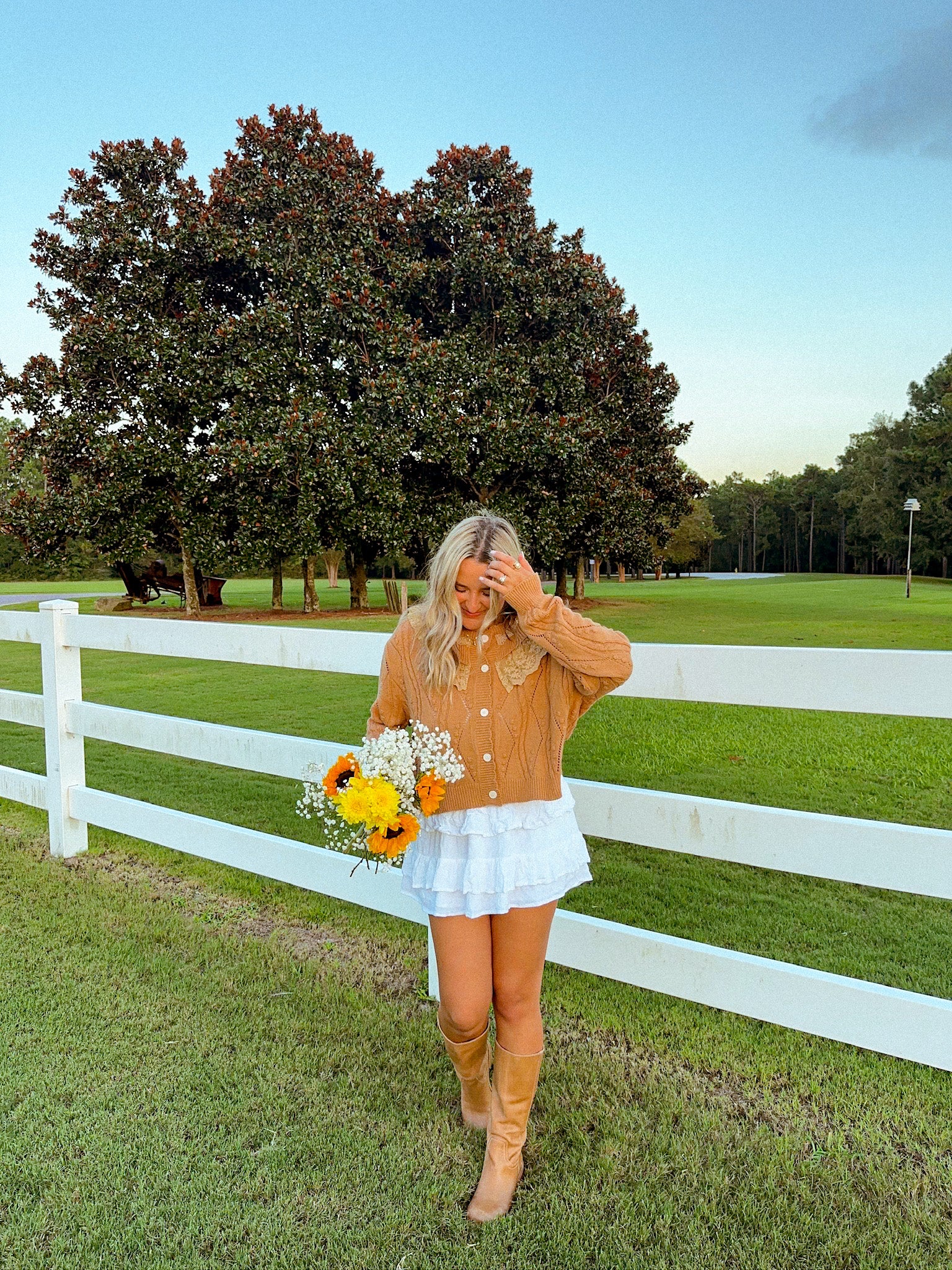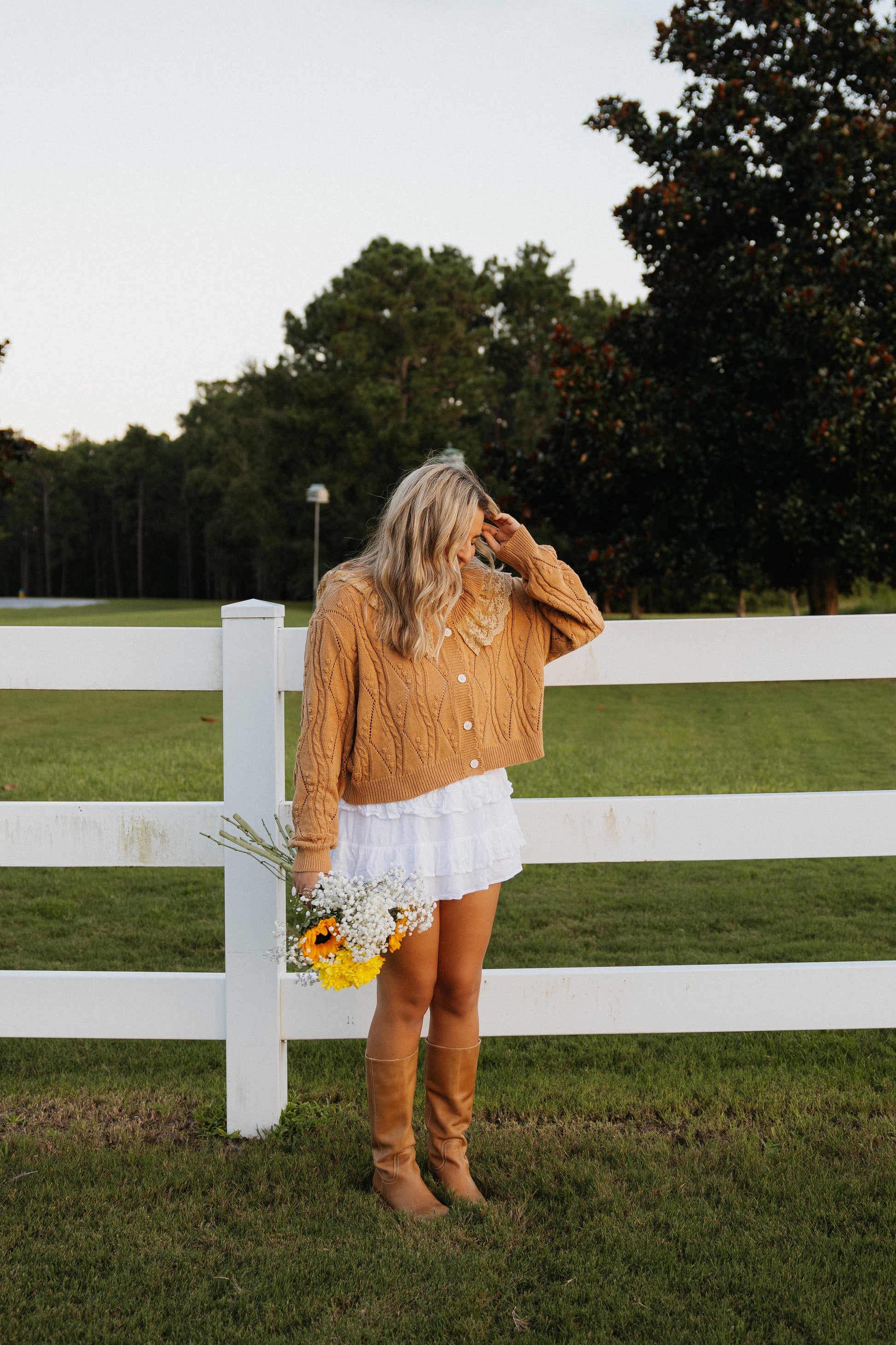 LACE RUFFLED LONG SLEEVE BUTTON FRONT CARDIGAN SWEATER